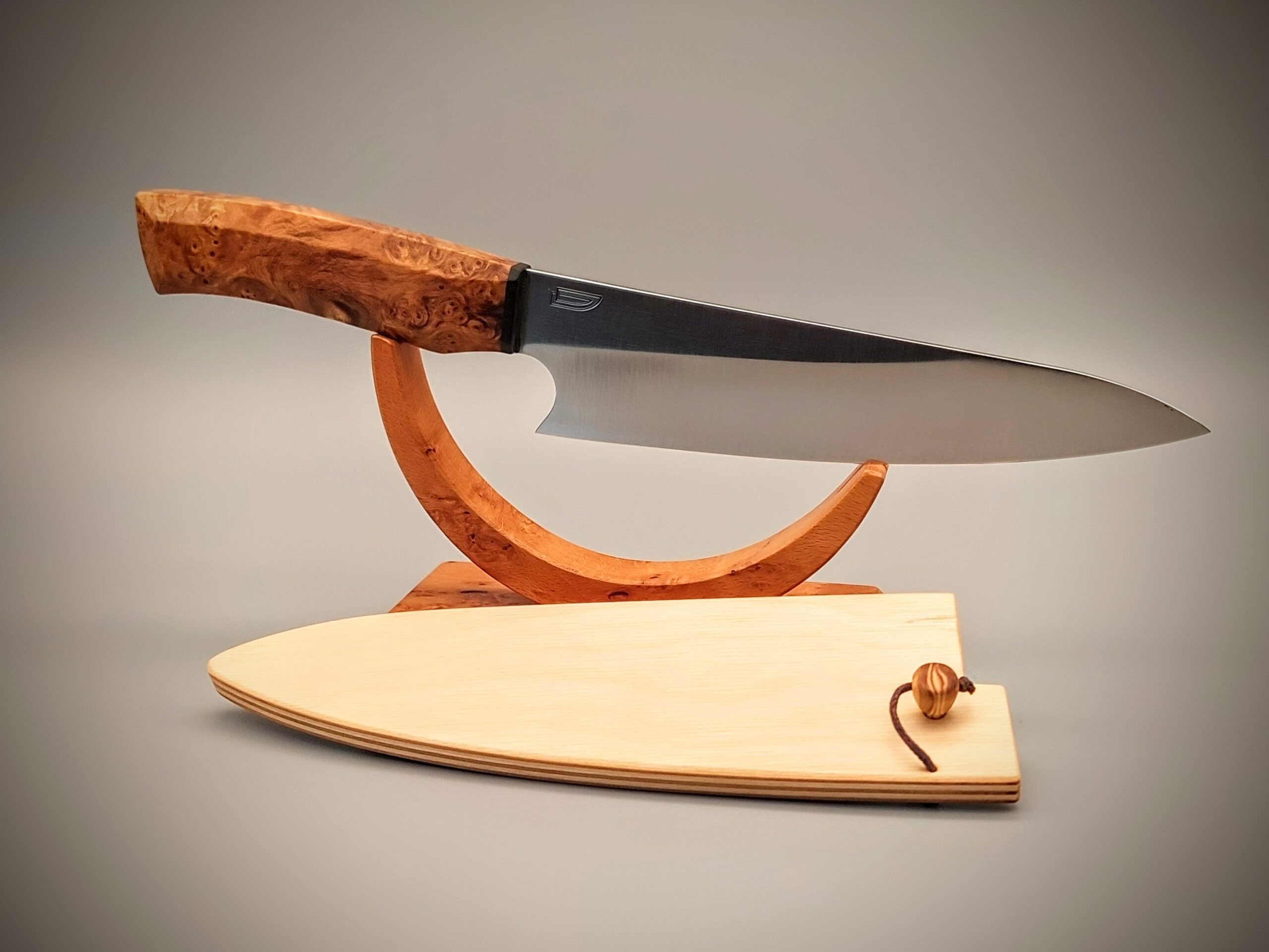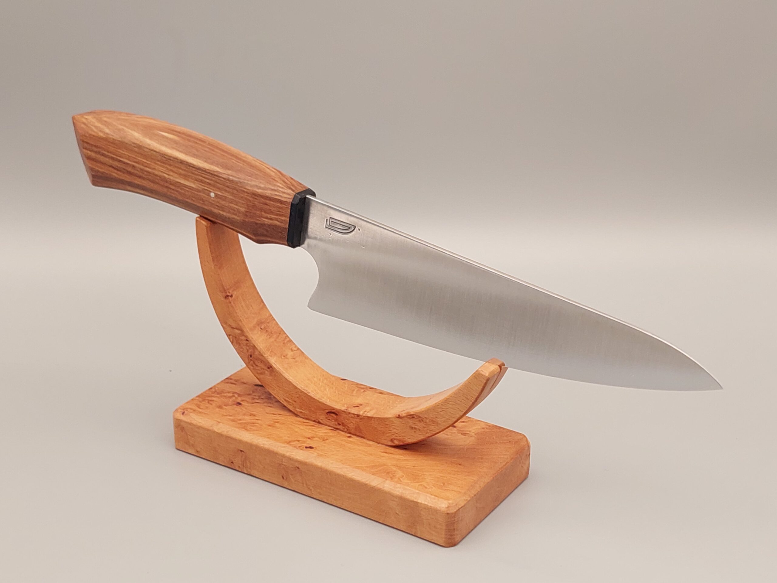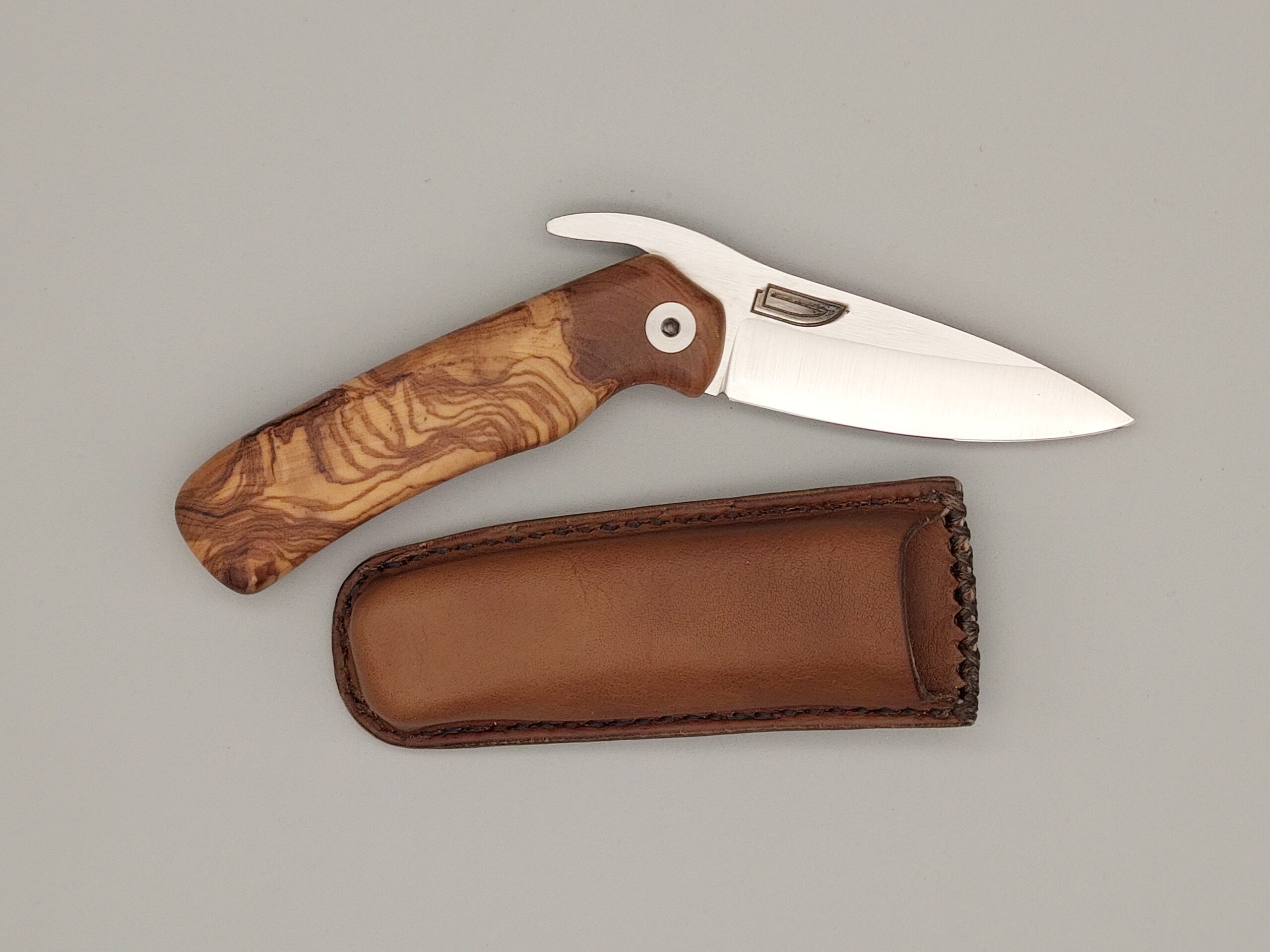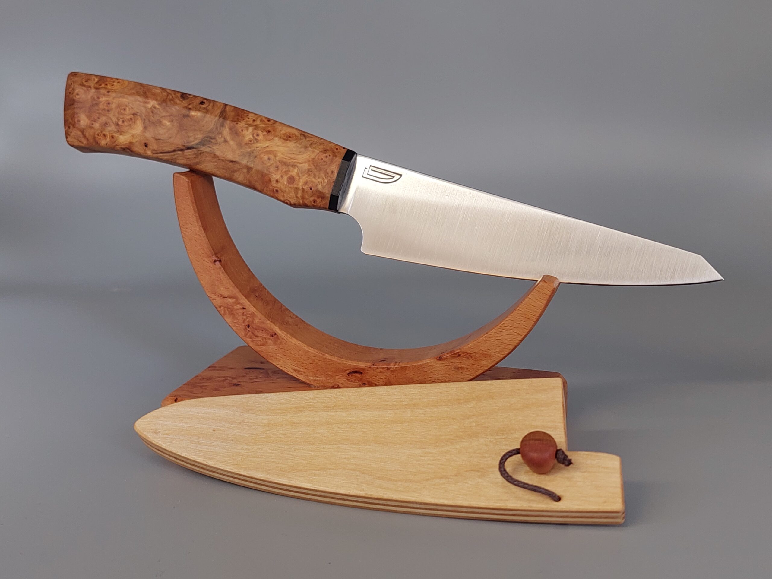 | Griff | L: 115 mm, Griff und Pin aus kanadische Kiefer stabilisiert, Zwinge aus geräucherter Eiche Griff geölt und gewachst |